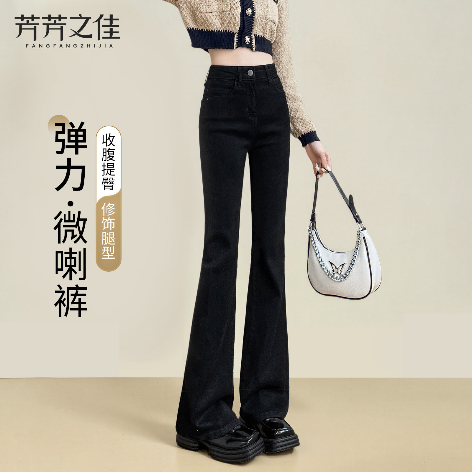 黑色微喇牛仔裤女2026新款春季加绒修身弹力小个子高腰显瘦喇叭裤
