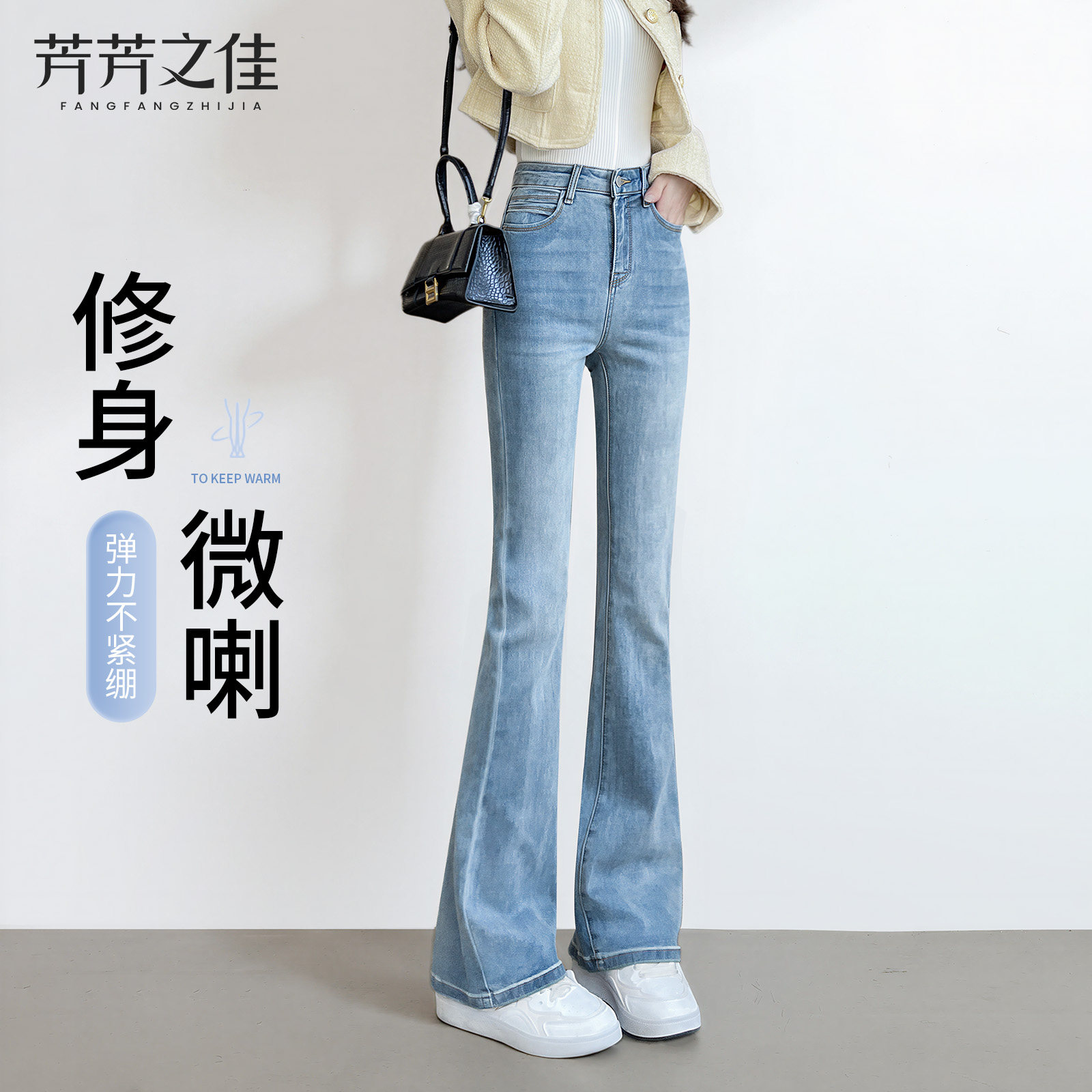 欧货爆款牛仔裤女2025冬季加绒喇叭裤赵露思同款微喇修身显瘦弹力