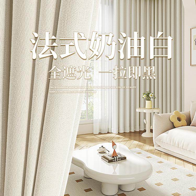 奶油风卧室窗帘遮光2024新款高级感法式白色浪漫客厅轻奢棉麻布料