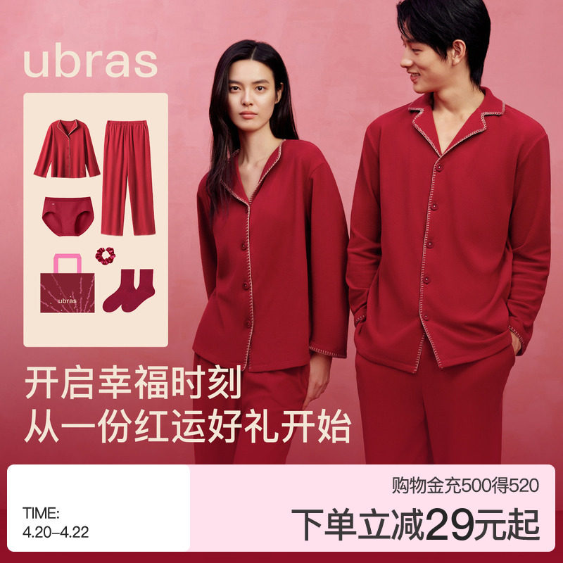 ubras奶酪绒家居服女士婚礼红色睡衣男款情侣本命年送礼新年秋冬