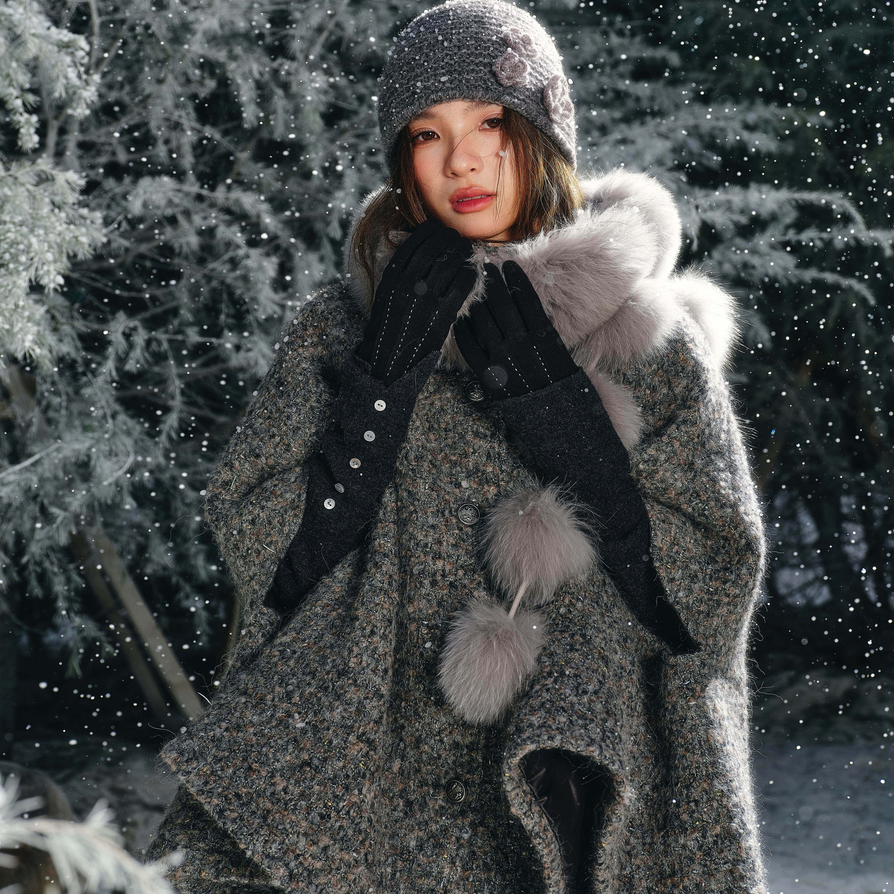 - 带帽毛呢外套女