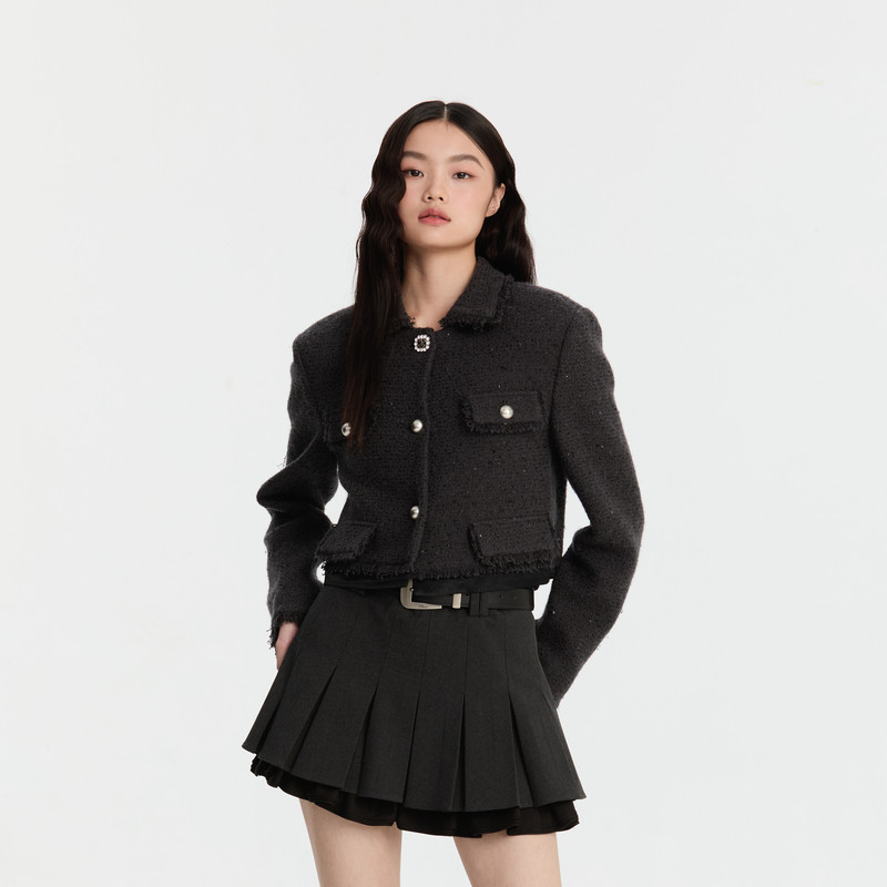 - 短款 毛呢外套 女 羊毛