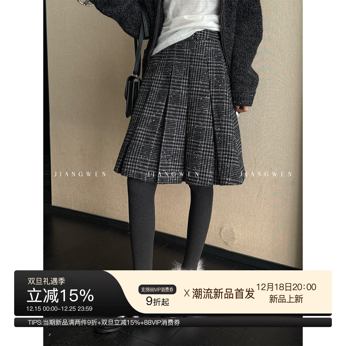 - 羊毛格仔大衣