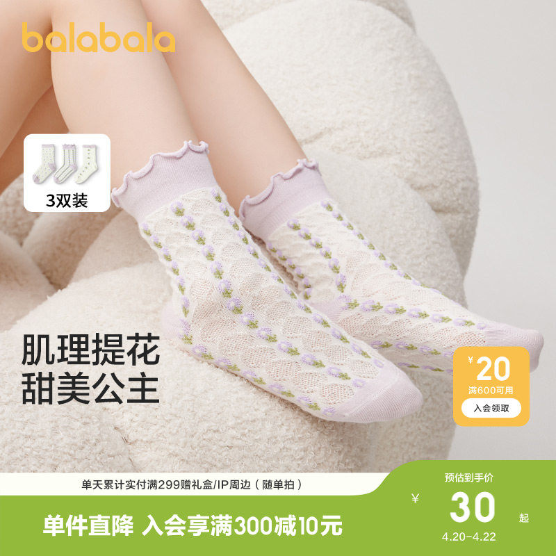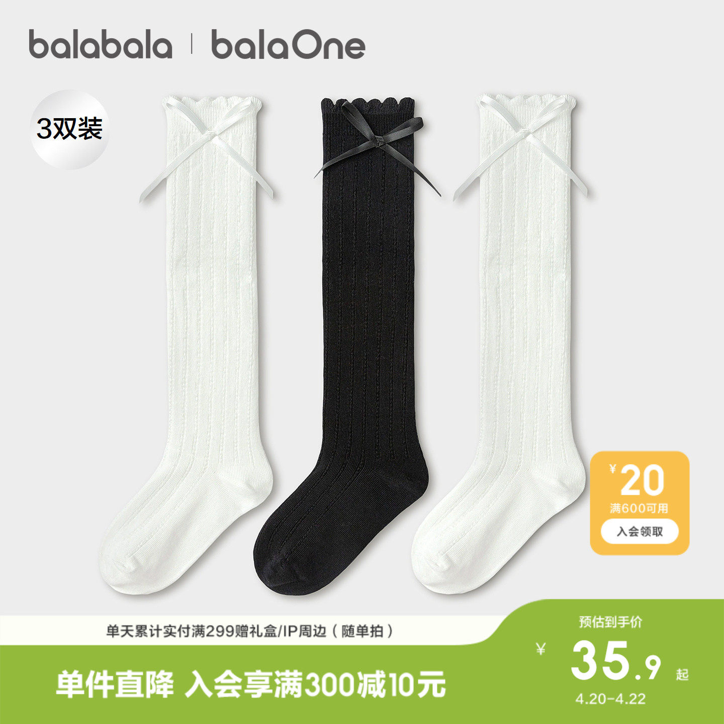 【balaOne】巴拉巴拉儿童袜子棉春秋季女童甜美中筒袜柔软三双装