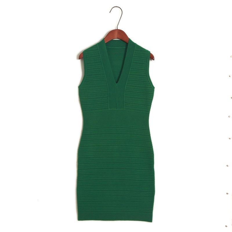 - 高腰 v领 连衣裙 修身