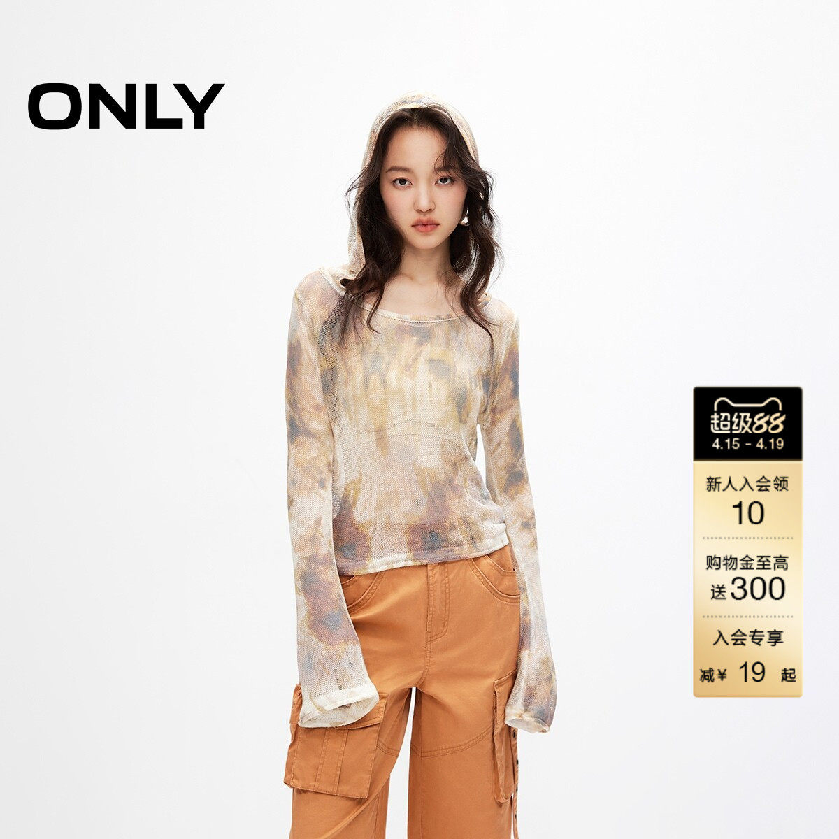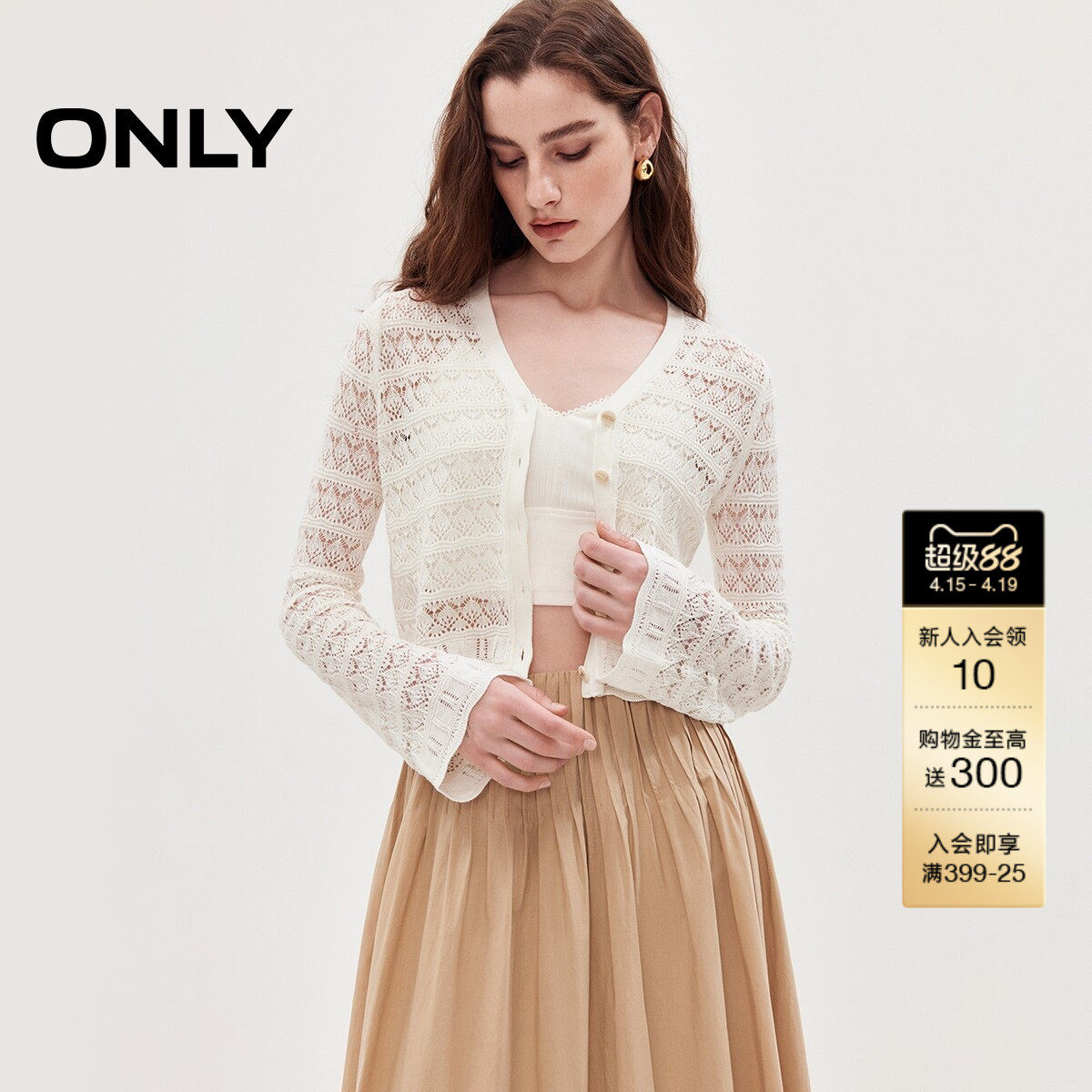ONLY2026夏季新款凉爽V领开衫镂空透肤上衣喇叭袖长袖针织衫女