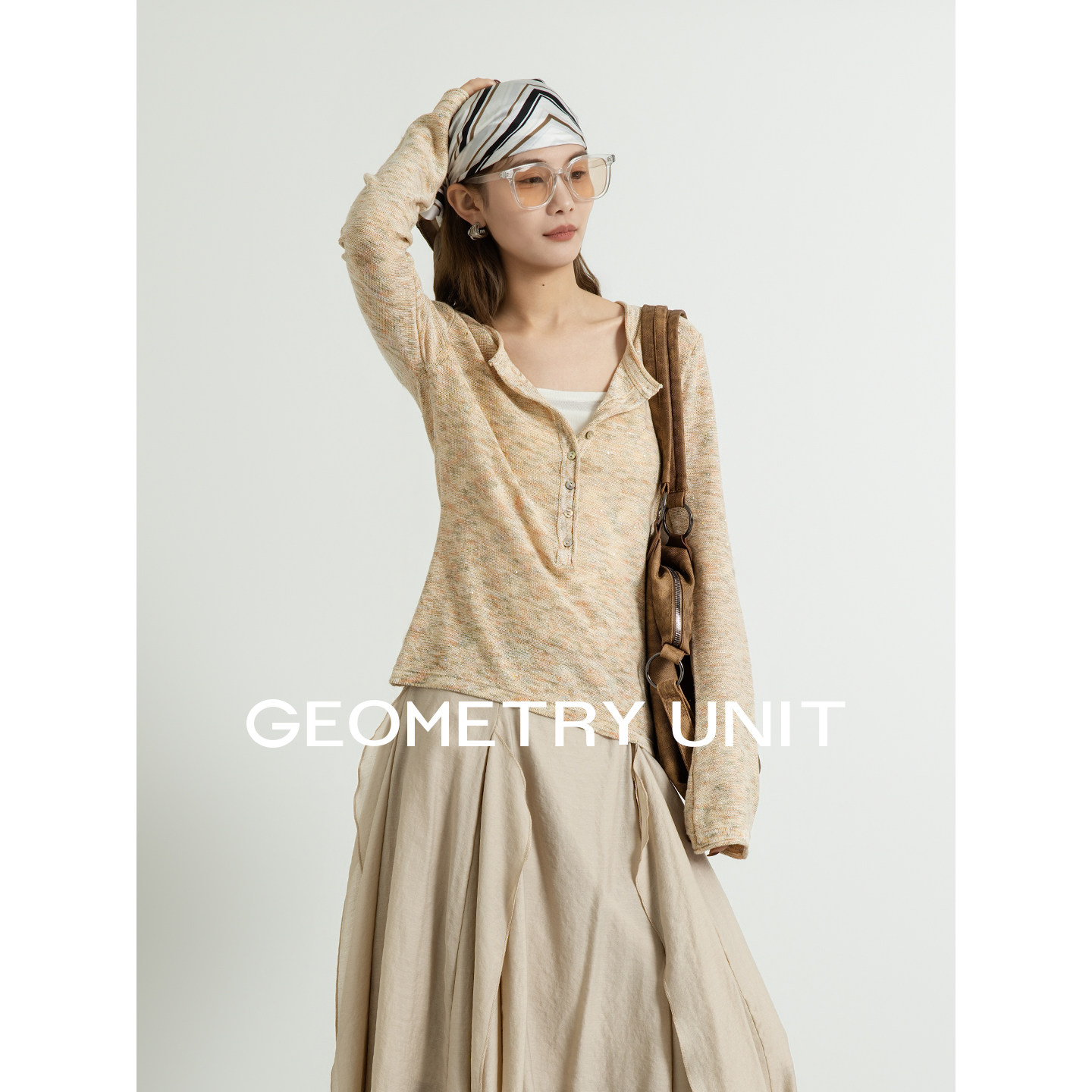 几何单元春夏季新款花纱珠片针织衫上衣喇叭袖圆领开襟长袖T恤女