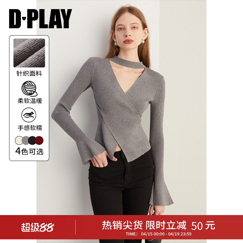 DPLAY优雅花灰色毛衣女修身半高领喇叭长袖针织衫上衣2026年春
