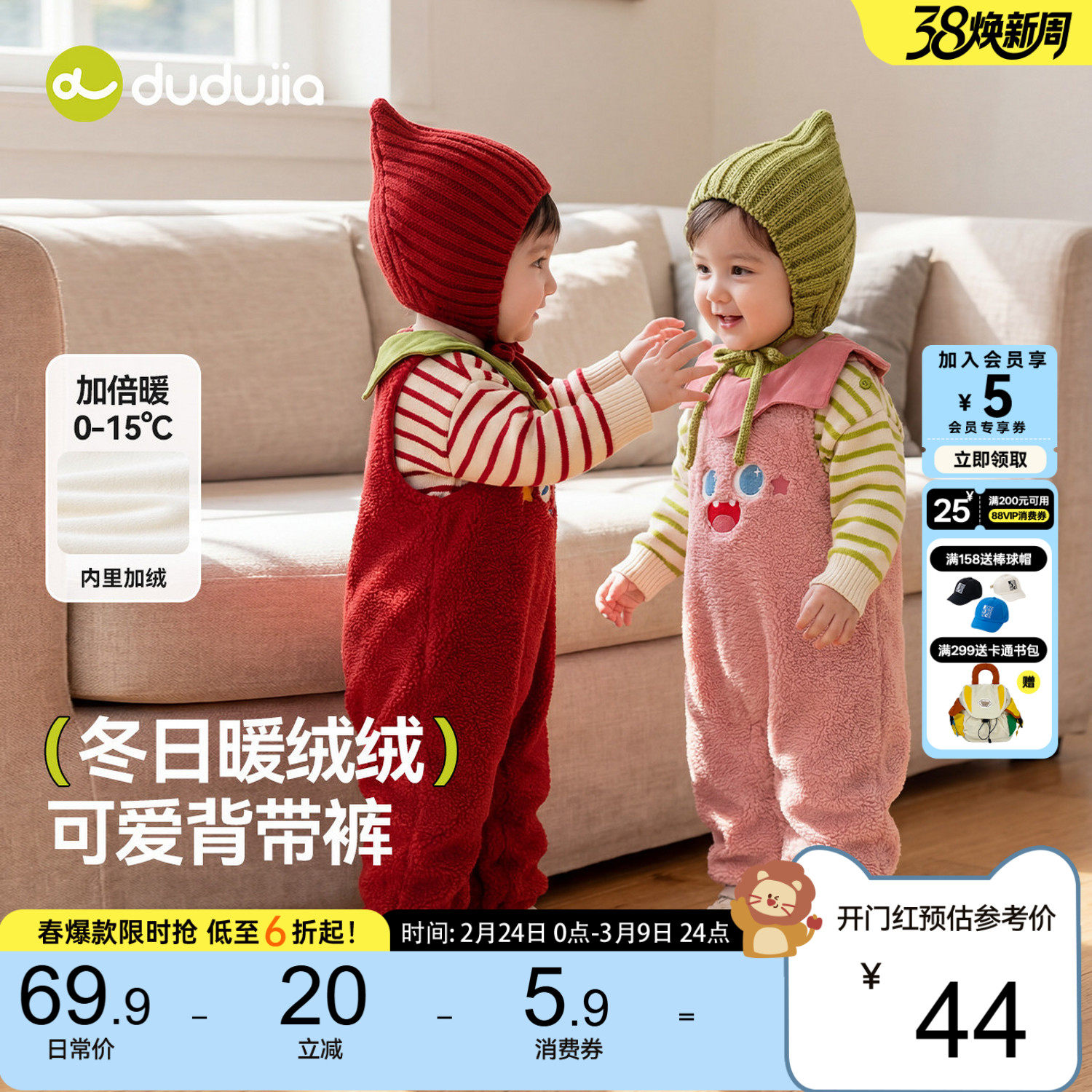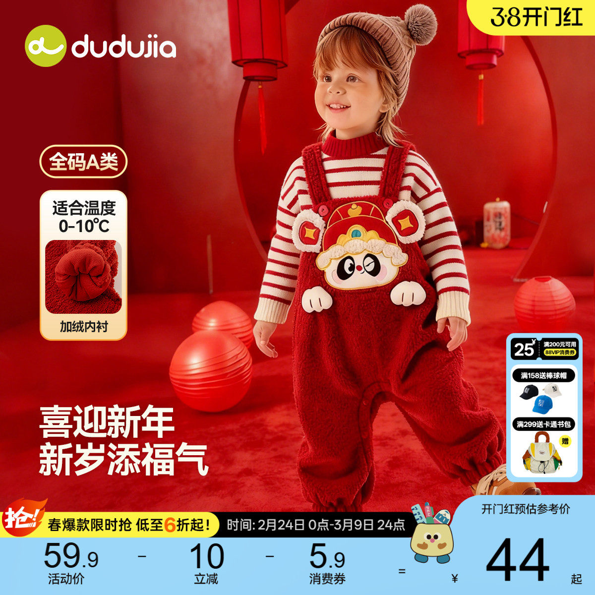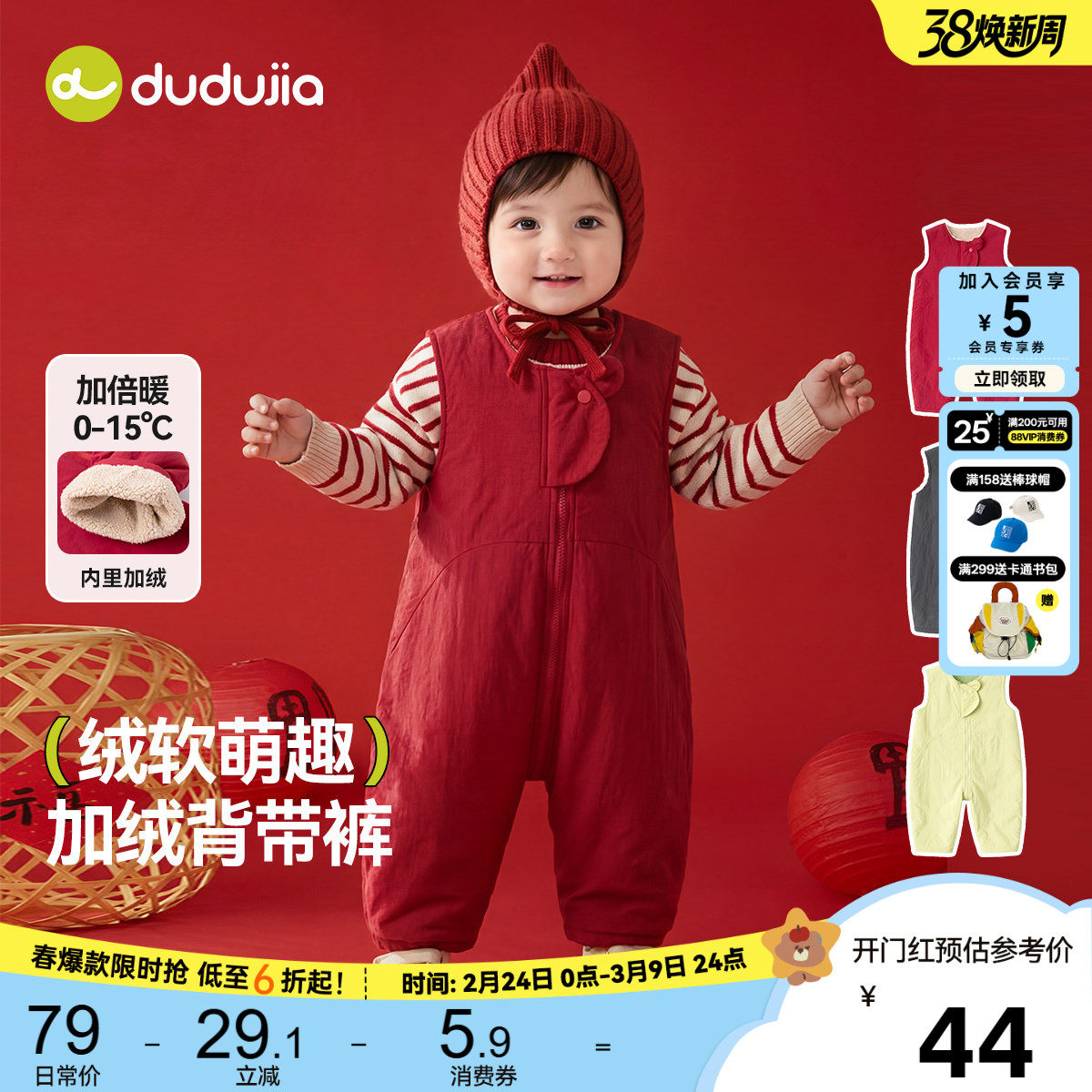 嘟嘟家儿童裤子宝宝冬季婴幼儿红色连体衣男童背带裤女童童装衣服