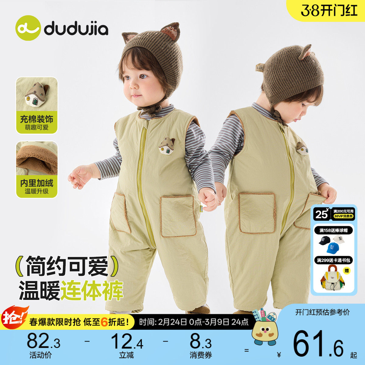 汤尼倍儿婴儿背带裤秋冬夹棉可开裆连体长裤男女宝宝外穿可爱裤子