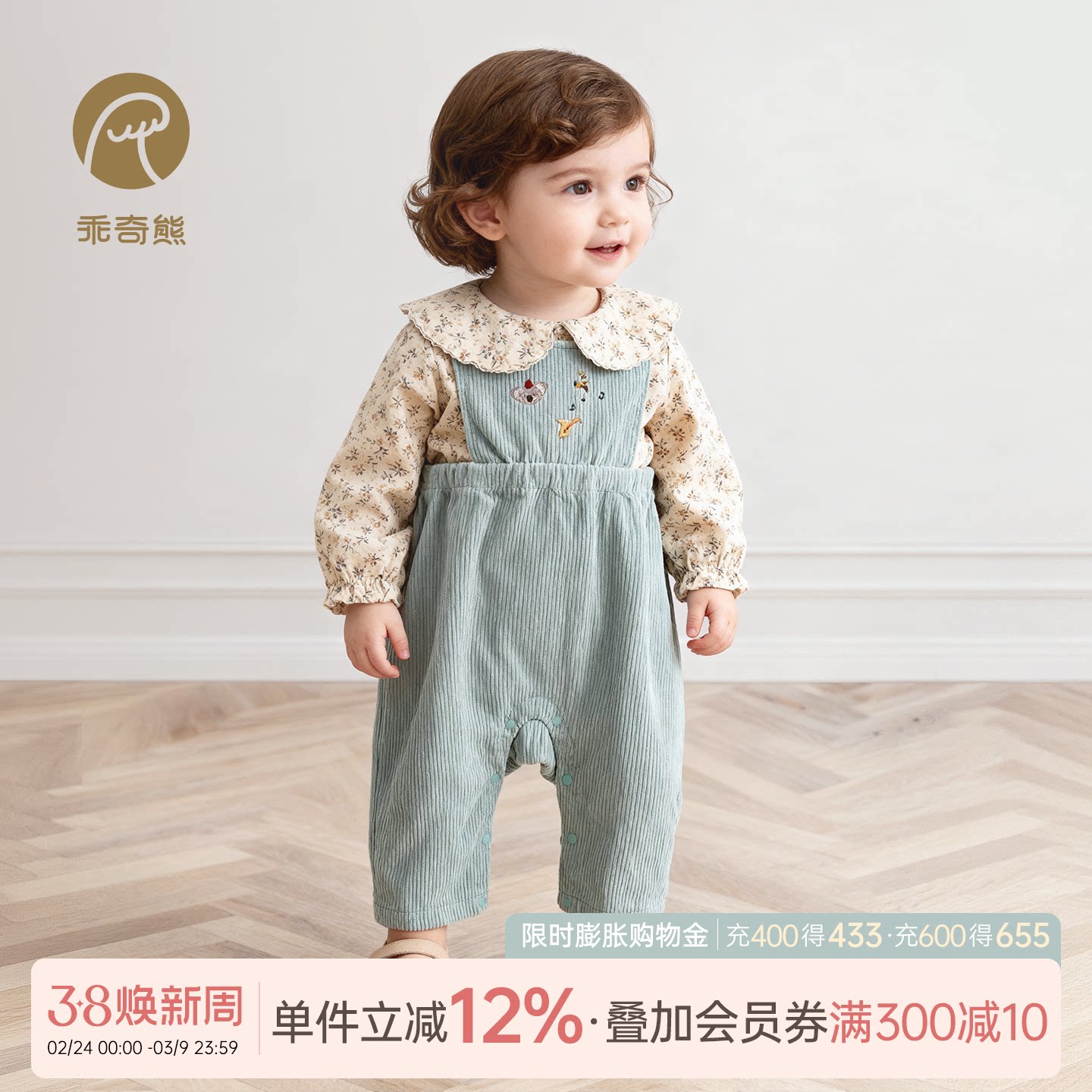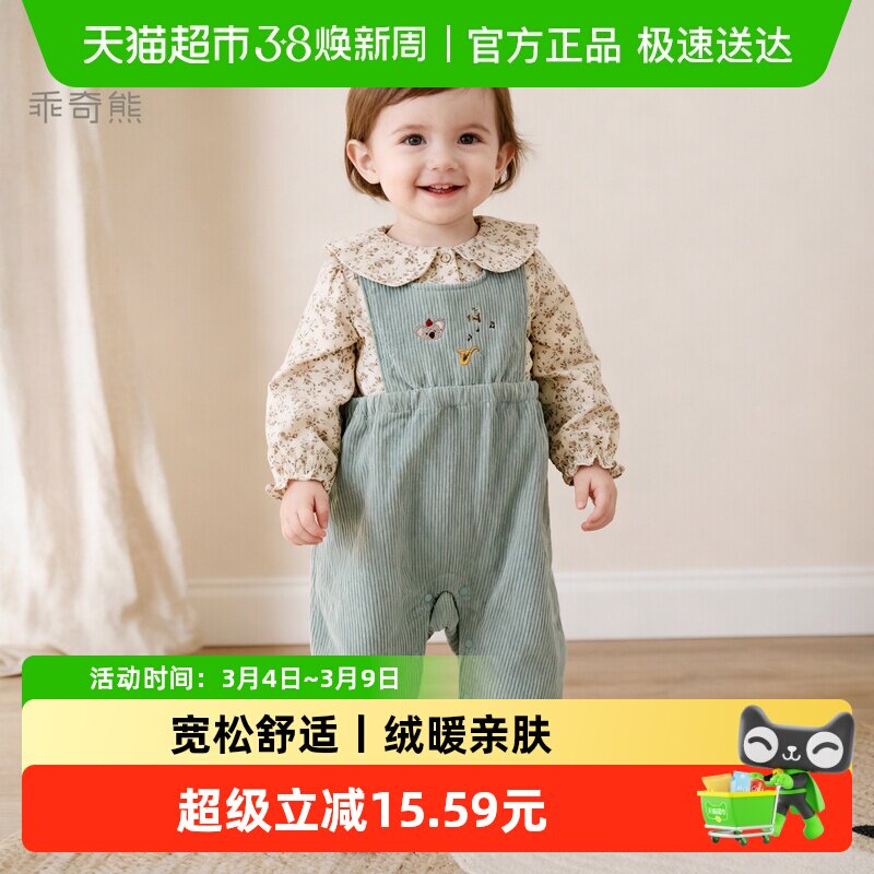 乖奇熊婴儿背带裤秋冬季男女宝宝灯芯绒保暖裤纯棉外穿连体长裤子
