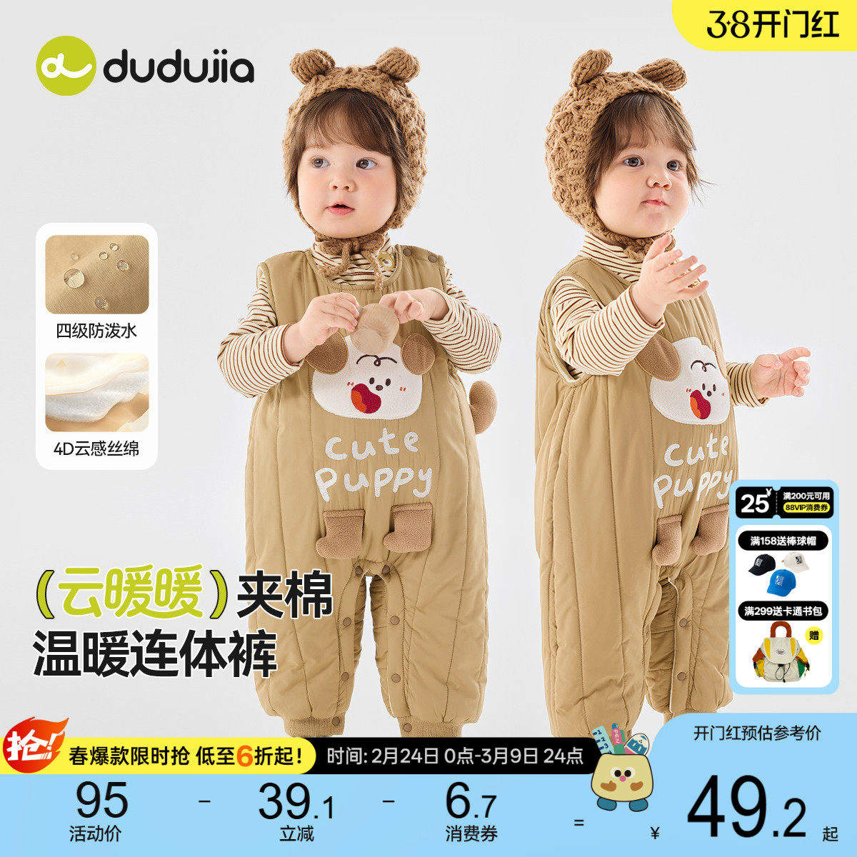 [4级防泼水]宝宝裤子儿童爬服冬季背带裤婴幼儿男童女童童装衣服