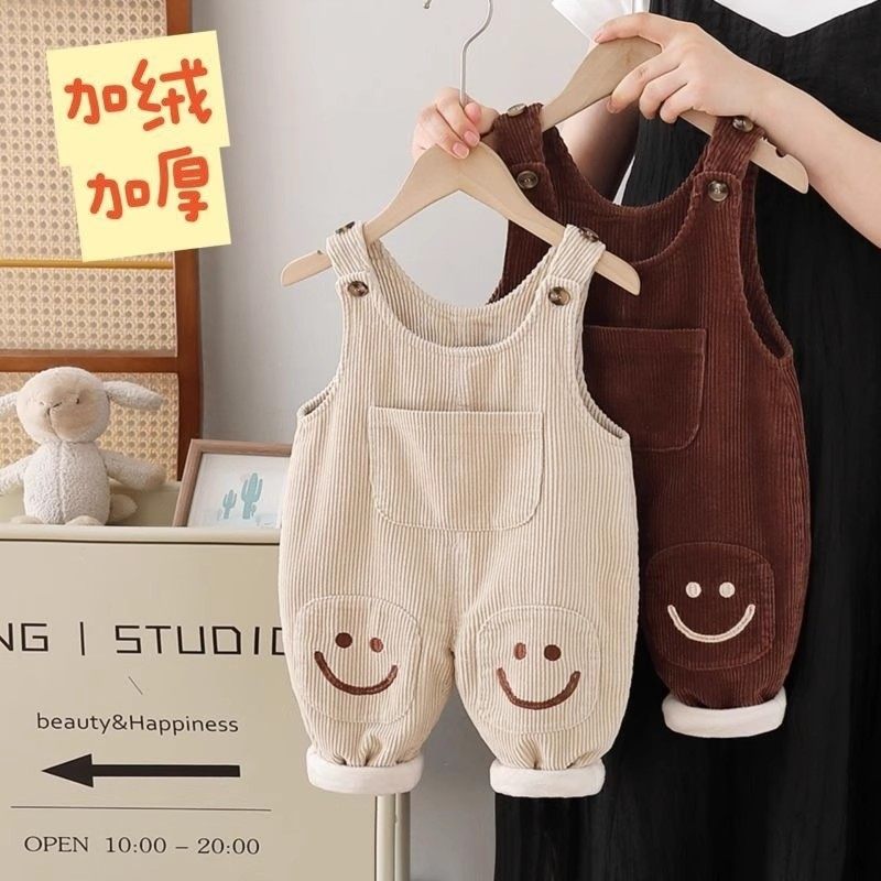 新款宝宝加绒背带裤男童女童一岁婴儿秋冬季纯棉加厚长裤子可开档