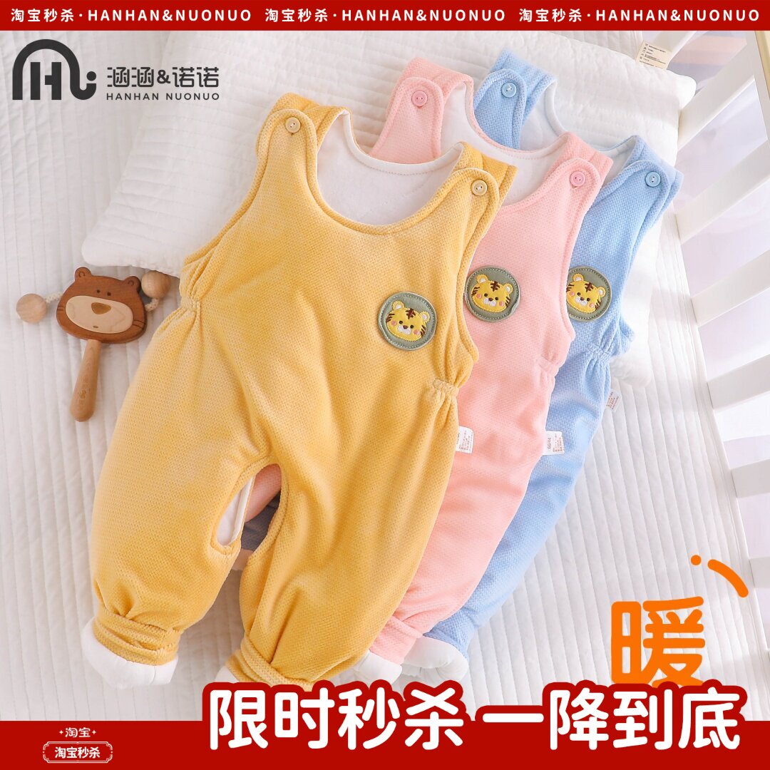 宝宝背带裤男宝新年裤子女宝秋冬夹棉保暖加厚长裤冬季婴儿连体衣