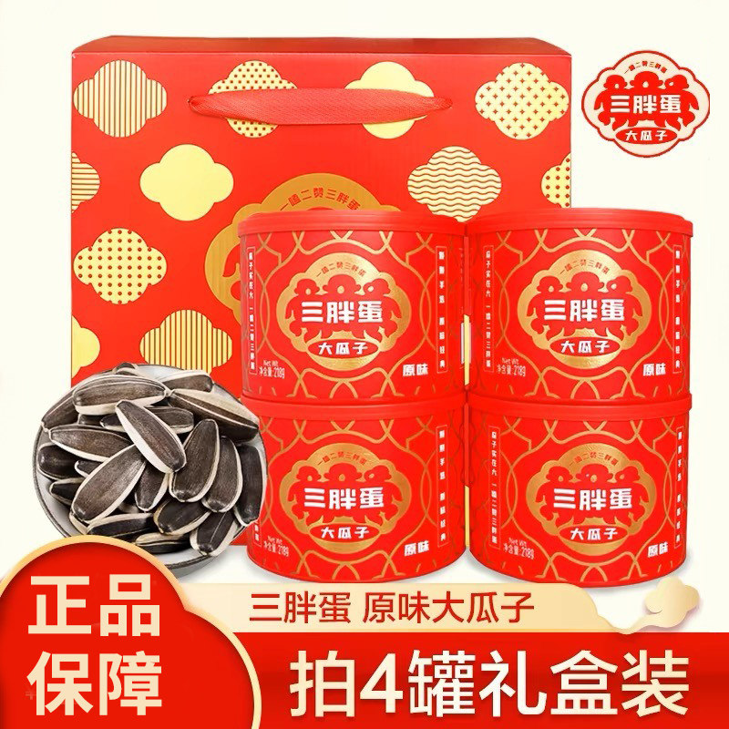 三胖蛋原味瓜子180g*4罐装大颗粒葵花籽年货礼盒坚果炒货瓜子零食