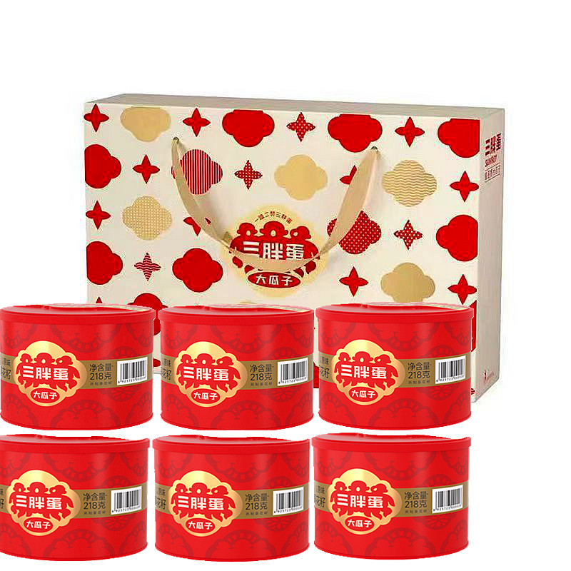【正品保障】三胖蛋原味瓜子礼盒装内蒙古大瓜子218gX6罐礼品罐装