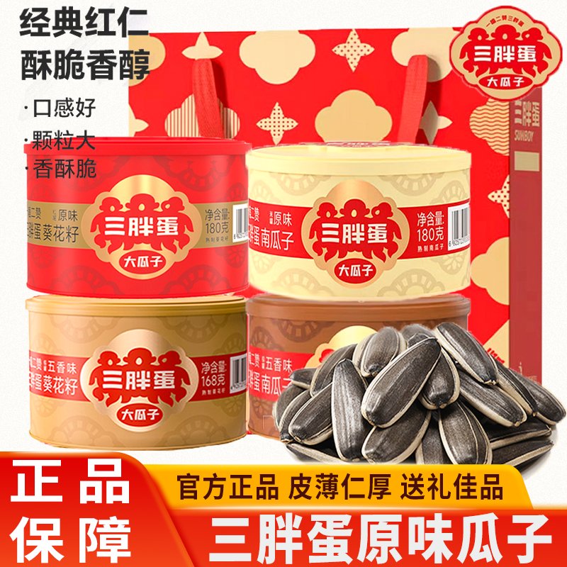 三胖蛋原味瓜子零食葵花籽香瓜子罐装桶装送礼装年货福利团购礼盒