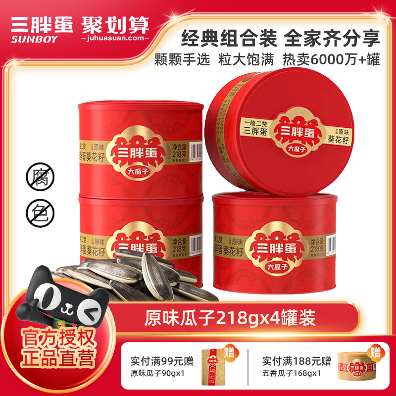 三胖蛋原味瓜子218gx4罐内蒙特产葵花籽零食坚果年货礼盒瓜子炒货