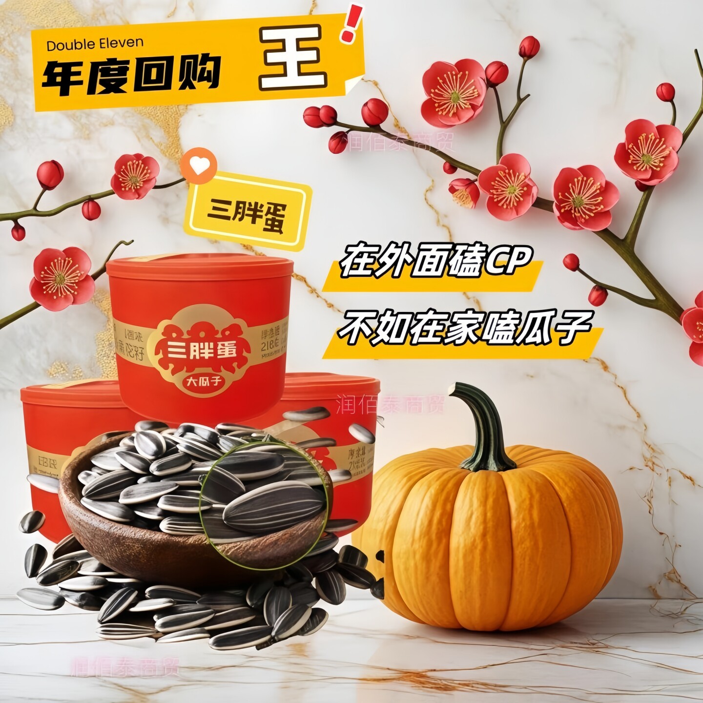 三胖蛋原味瓜子南瓜子五香味内蒙古特产追剧聚会坚果年货礼盒零食