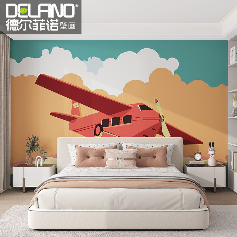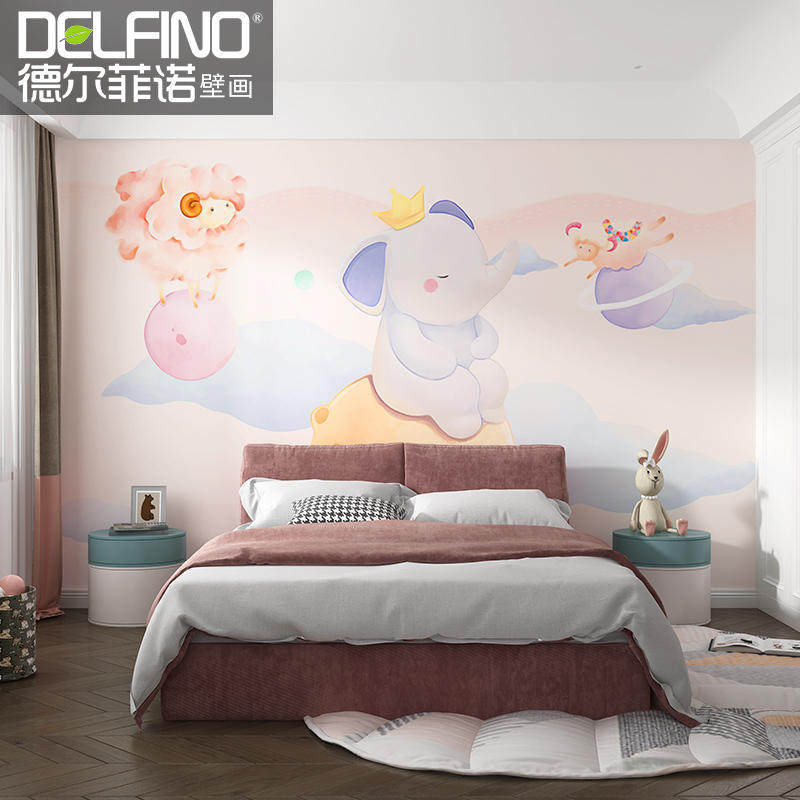 简约无缝墙布卧室床头儿童房墙纸梦幻大象卡通男女孩壁画环保壁布