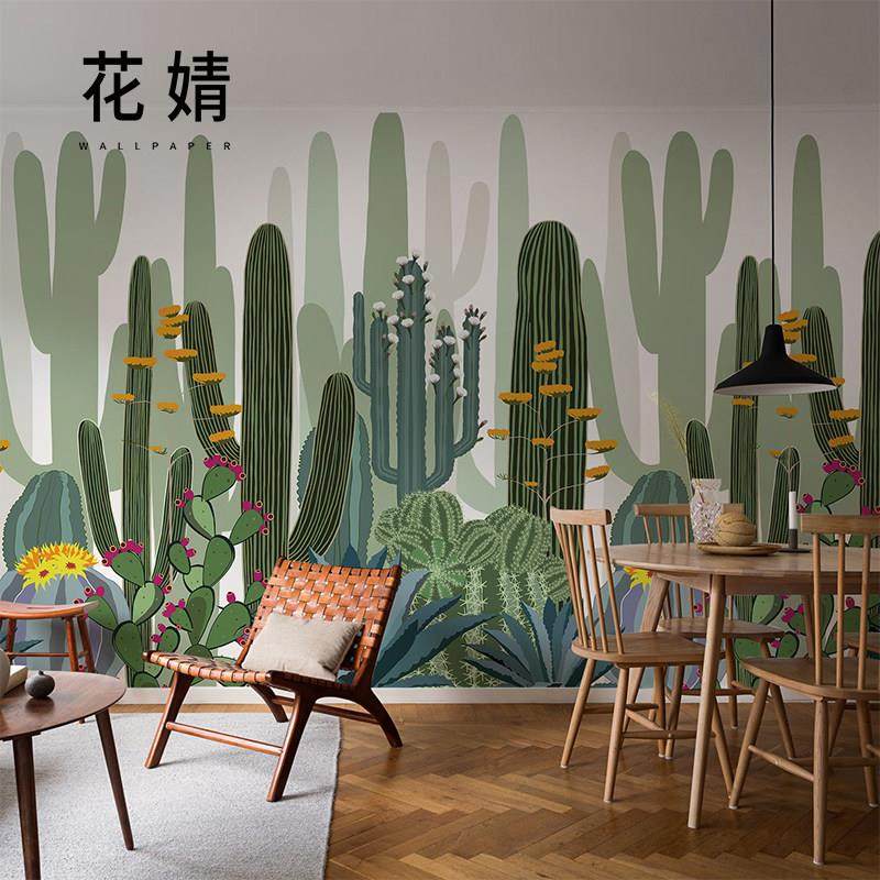 北欧仙人掌壁纸沙发电视背景墙无缝墙布卧室餐厅装饰墙纸定制壁画