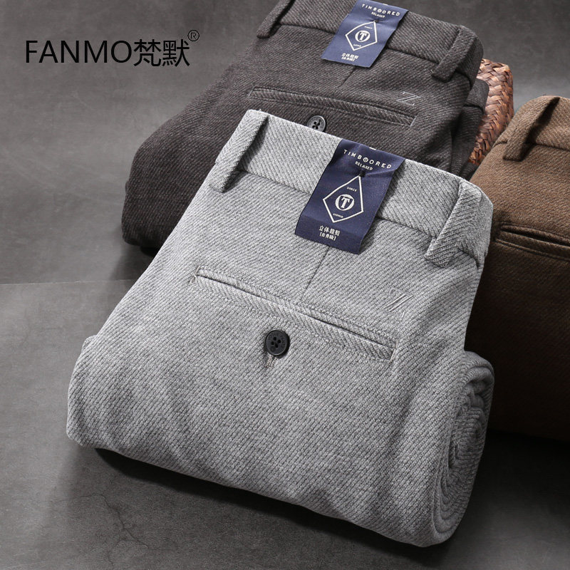 啄木鸟加绒加厚正品厚款休闲裤男商务直筒宽松西裤男弹力免烫外穿