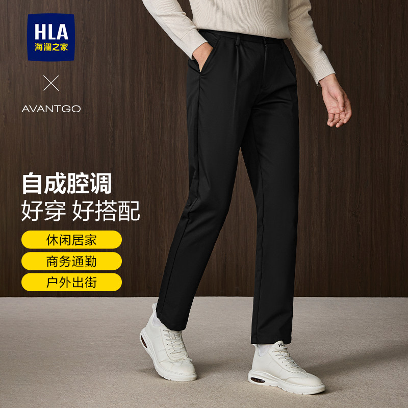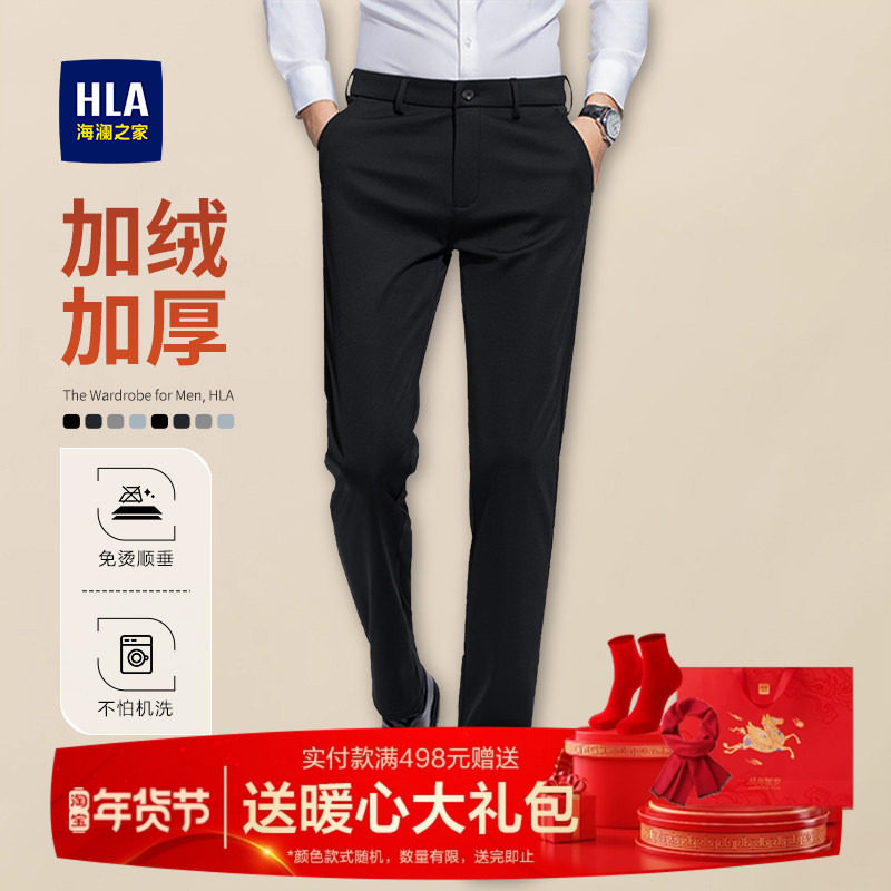 HLA/海澜之家易打理商务休闲裤加绒加厚可选秋冬季新直筒长裤男士
