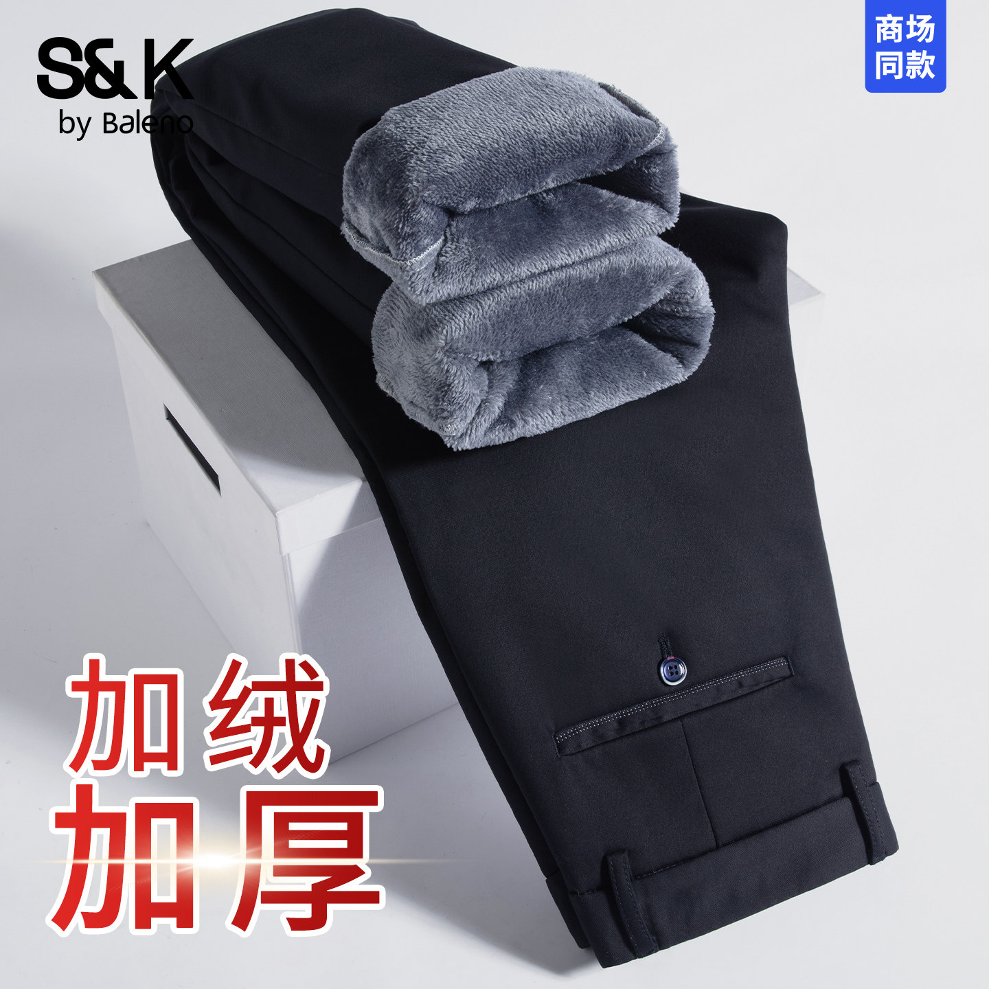 班尼路SK冬季款极简风商务休闲裤男直筒加绒保暖免烫抗皱男长裤YS