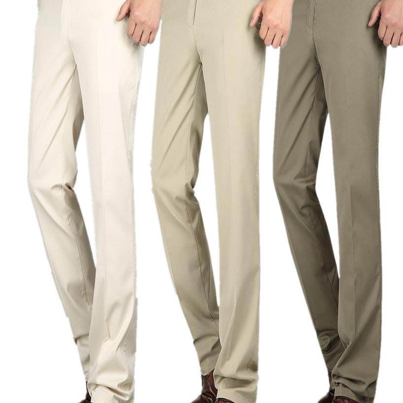 全棉免烫商务休闲裤男夏季薄款中老年男裤高腰宽松爸爸纯棉休闲裤