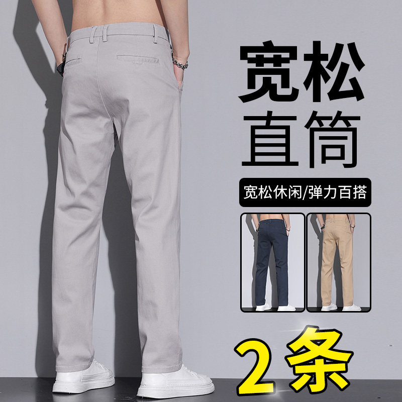 【满2件7.5折】爱缪斯秋季薄款商务休闲裤男士弹力宽松纯色长裤