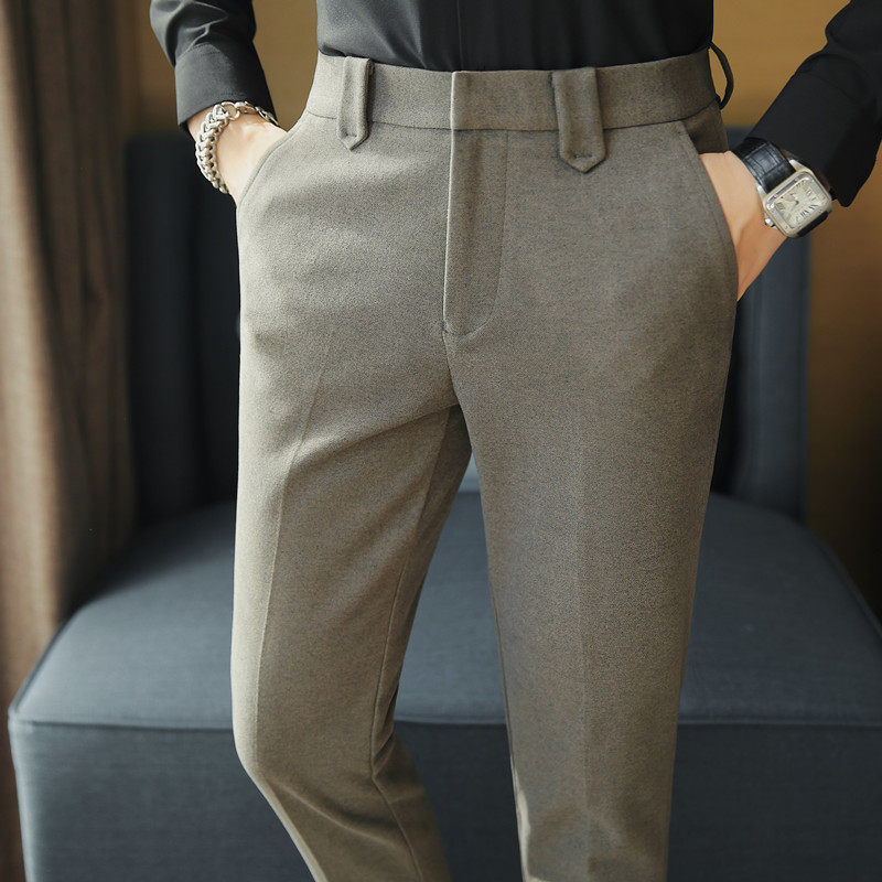 秋冬季免烫毛呢商务休闲裤男士韩版潮牌修身小西裤直筒垂感西装裤
