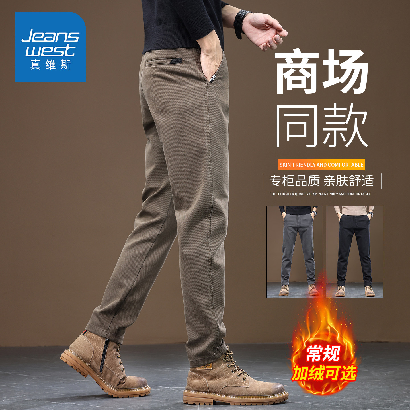 JSSD HOMME 秋冬保暖纤维直筒长裤子男士通勤纯色商务休闲裤男款