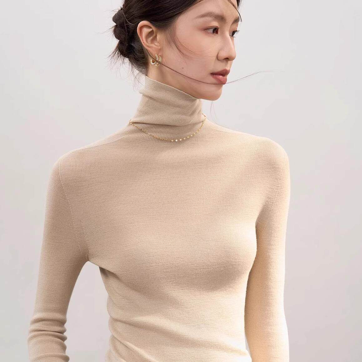 - 半高领羊毛打底衫
