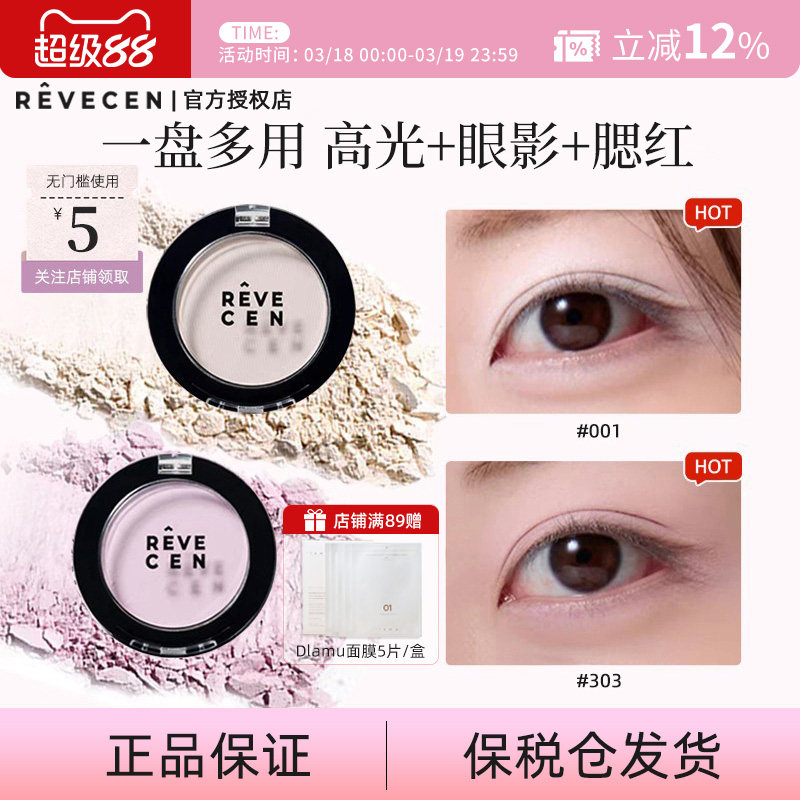 韩国revecen高光提亮单色眼影盘修容哑光腮红腮紫卧蚕面中自然