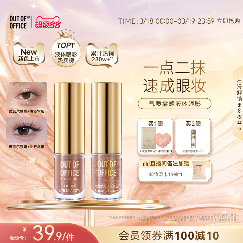 【2件75折】OUT OF OFFICE哦野液体眼影单色OOO亮片哑光细超闪