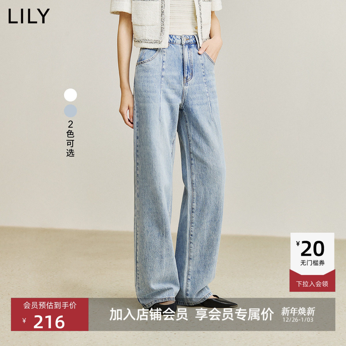 【商场同款】LILY夏新款女装复古休闲通勤高腰显瘦阔腿牛仔裤