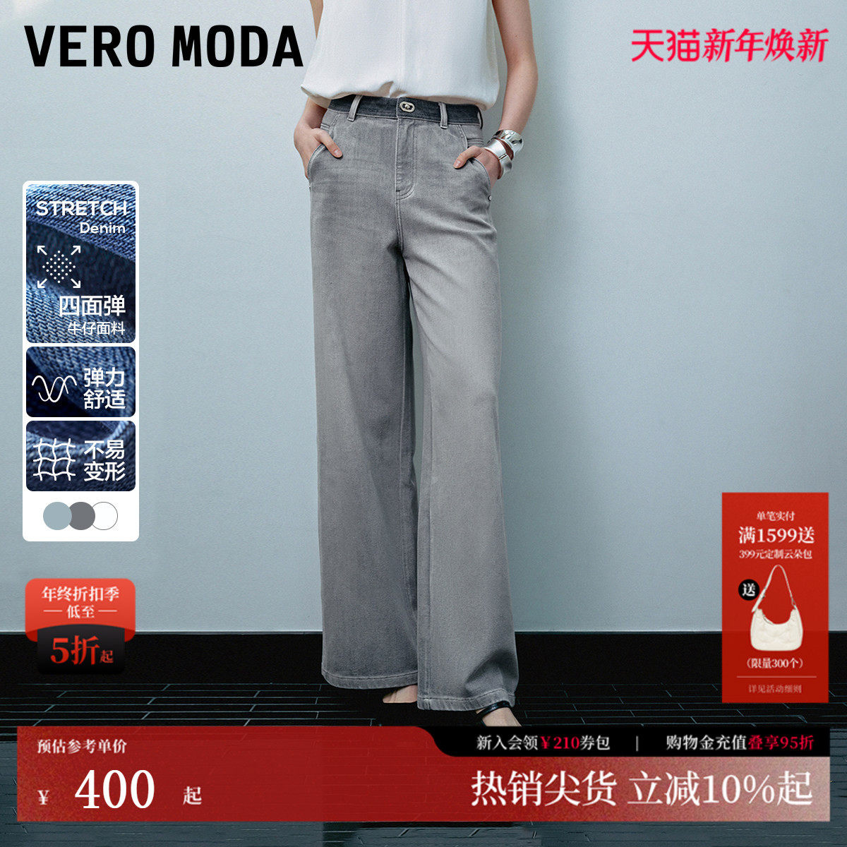 Vero Moda牛仔裤女25夏季宽松中腰水洗阔腿裤松弛老钱风325132065