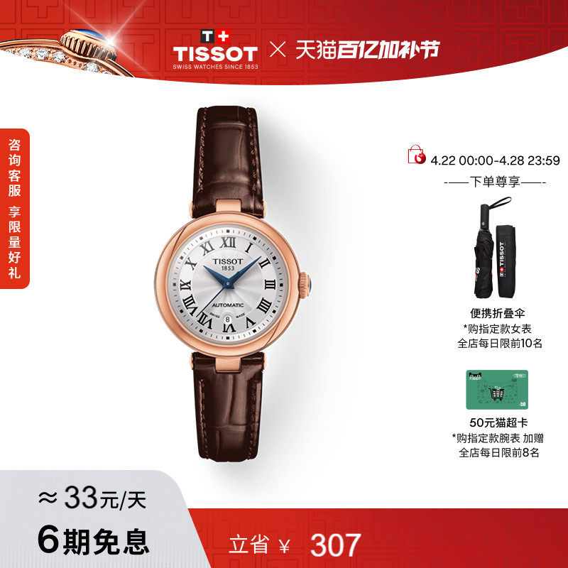 【自营】TISSOT天梭手表小美人系列女表皮带自动机械手表瑞士正品