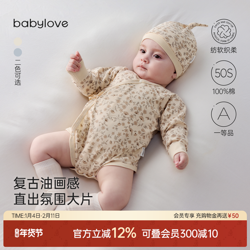 【清仓】babylove【纺软织柔】婴儿包屁衣春秋纯棉女宝宝三角哈衣