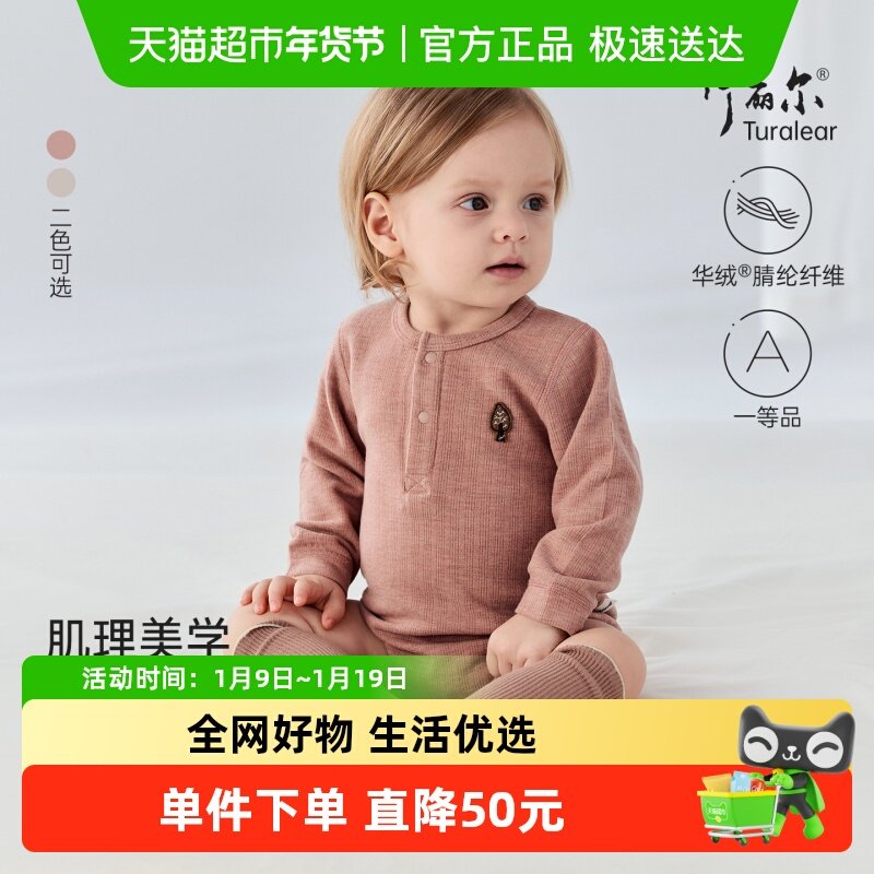 babylove婴儿包屁衣秋冬季纯羊毛宝宝三角哈衣爬服保暖打底衣睡衣