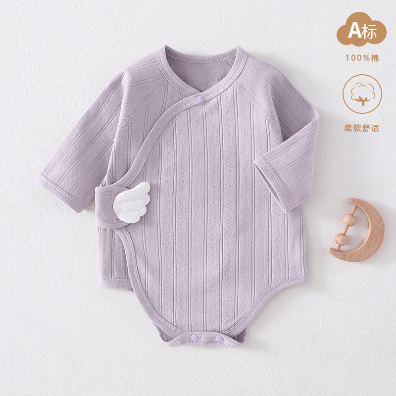 婧麒婴儿包屁衣春秋男女宝宝三角哈衣居家偏开系带打底薄款连体衣