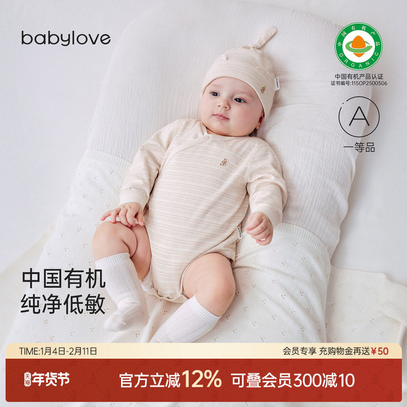 babylove【中国有机彩棉】婴儿包屁衣春秋季纯棉男女宝宝三角哈衣
