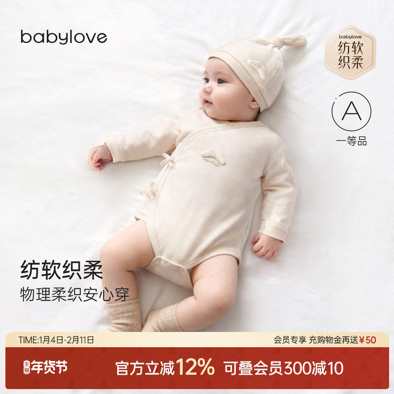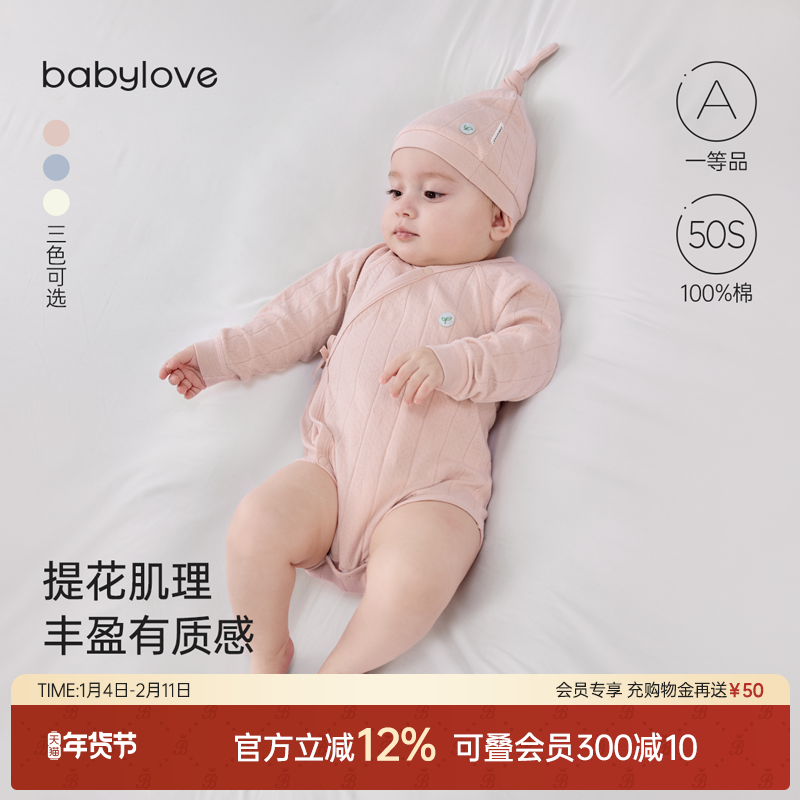 babylove【纺软织柔】新生儿系带包屁衣春秋纯棉衣服宝宝三角哈衣