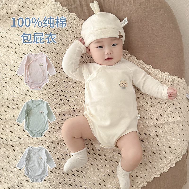 新生婴儿衣服春秋冬纯棉婴儿长袖包屁衣52码无骨男女宝宝三角哈衣