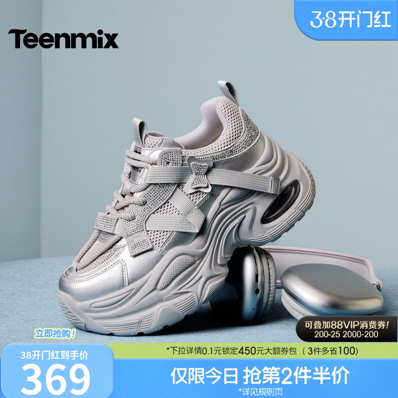 张凌赫同款百丽女鞋快乐星球厚底银色老爹鞋运动休闲鞋子B2736CM5