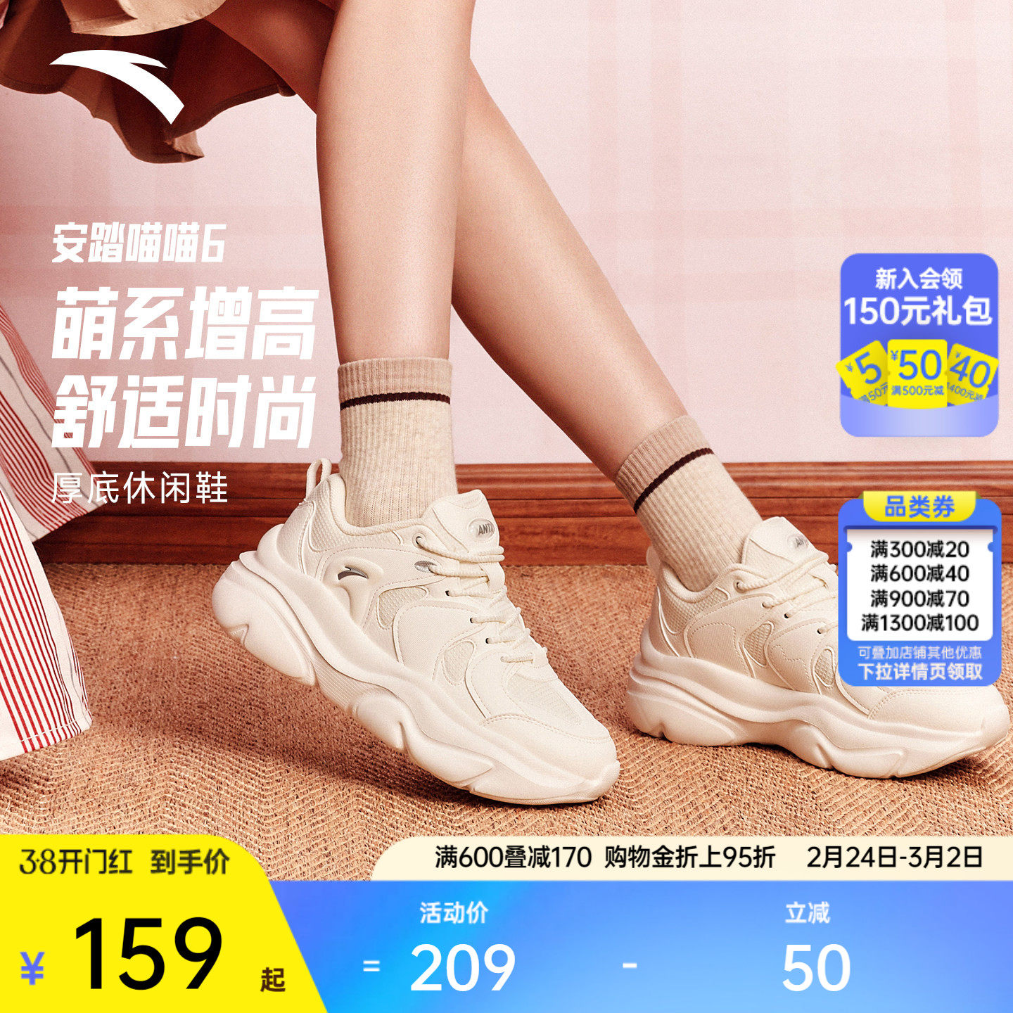 特步爪爪鞋丨女鞋夏季轻便厚底增高老爹鞋休闲鞋百搭轻便运动鞋子