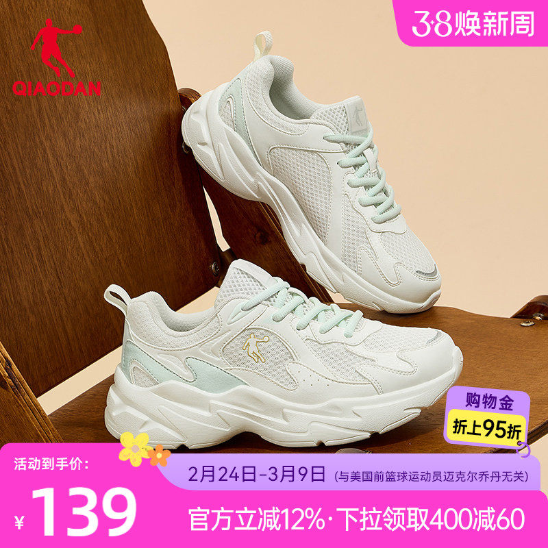 乔丹网面休闲鞋女运动鞋2026春季新款厚底增高老爹鞋薄荷绿女鞋子