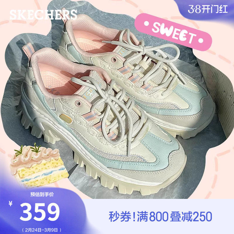 斯凯奇奶油蜜糕鞋|春季女厚底增高小个子老爹鞋休闲运动鞋熊猫鞋