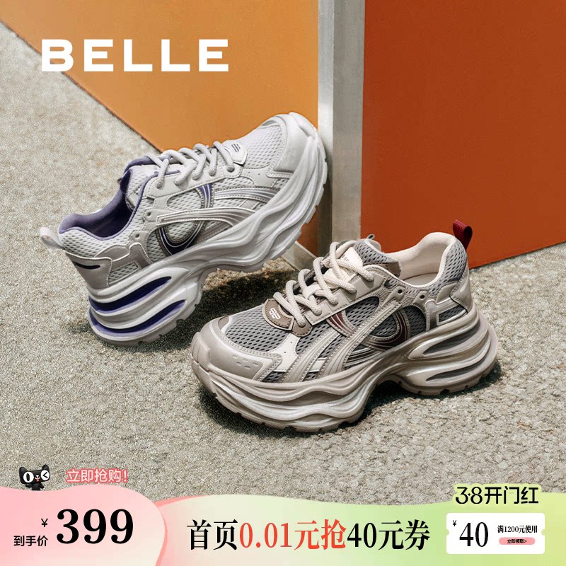 百丽网面厚底增高老爹鞋女2026夏季新款机能运动休闲鞋子F4M1DBM6