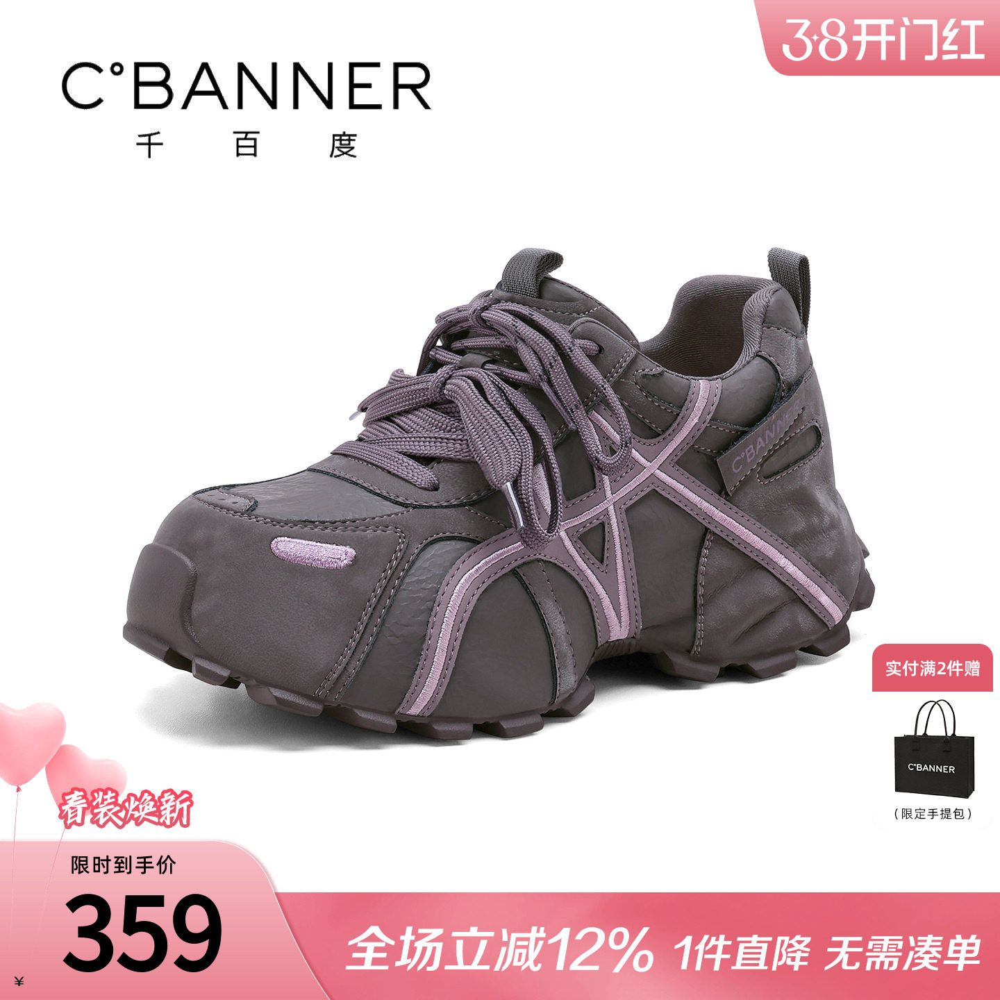 千百度超火厚底鞋女2026春季新款时尚百搭休闲板鞋平底增高运动鞋